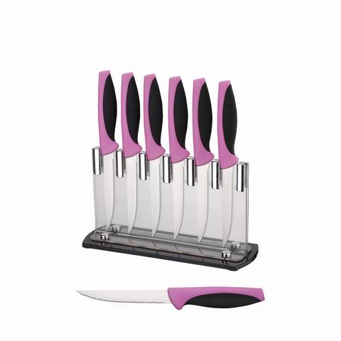 6pcs steak knife set in straight acrylic block,PP with TPR handle